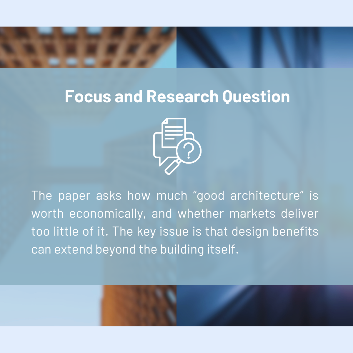 The starting point of the study is that architecture can create value in two ways. First, a well-designed building may be more desirable to live in or work in. This is a direct benefit that can show up in higher rents or sale prices.