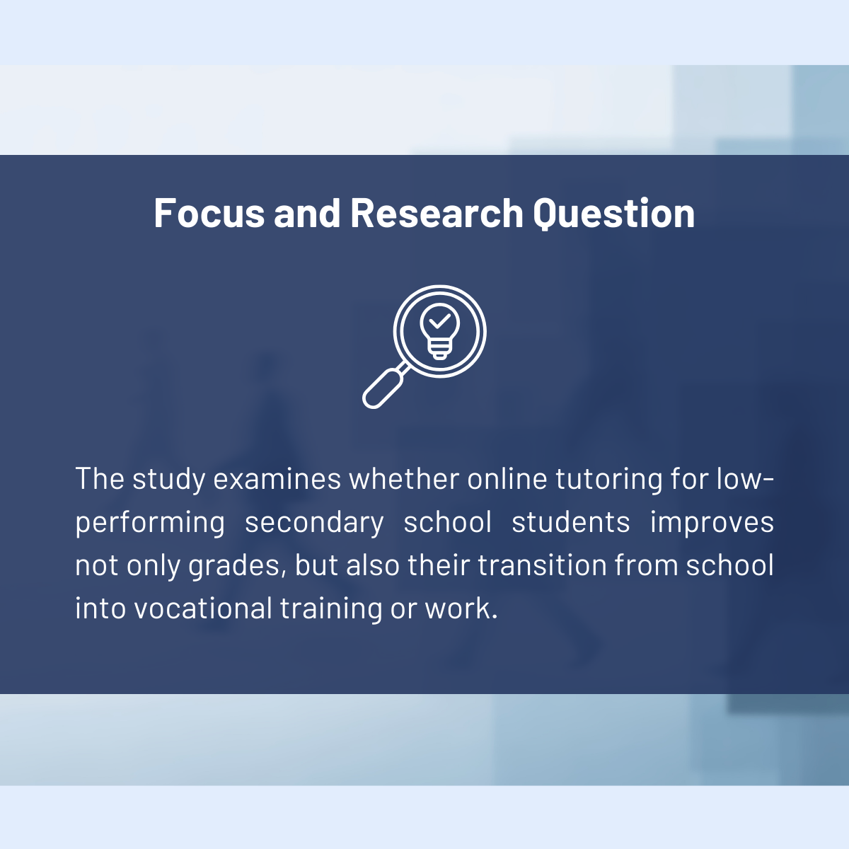 Educational setbacks early in life can have long-lasting consequences, especially for students who struggle at school and face difficult transitions into work or vocational training. A new study asks whether online tutoring can help close this gap by supporting not only learning at school, but also the move from school into the labor market.
