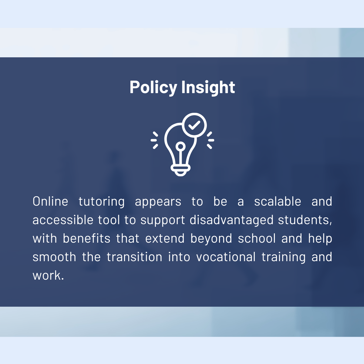 From a policy perspective, these findings are highly relevant. They suggest that online tutoring can support disadvantaged students in a cost-effective and scalable way, even without transforming attitudes or behavior. Small improvements in academic performance can have meaningful consequences when education systems rely on formal credentials and grades to allocate opportunities.