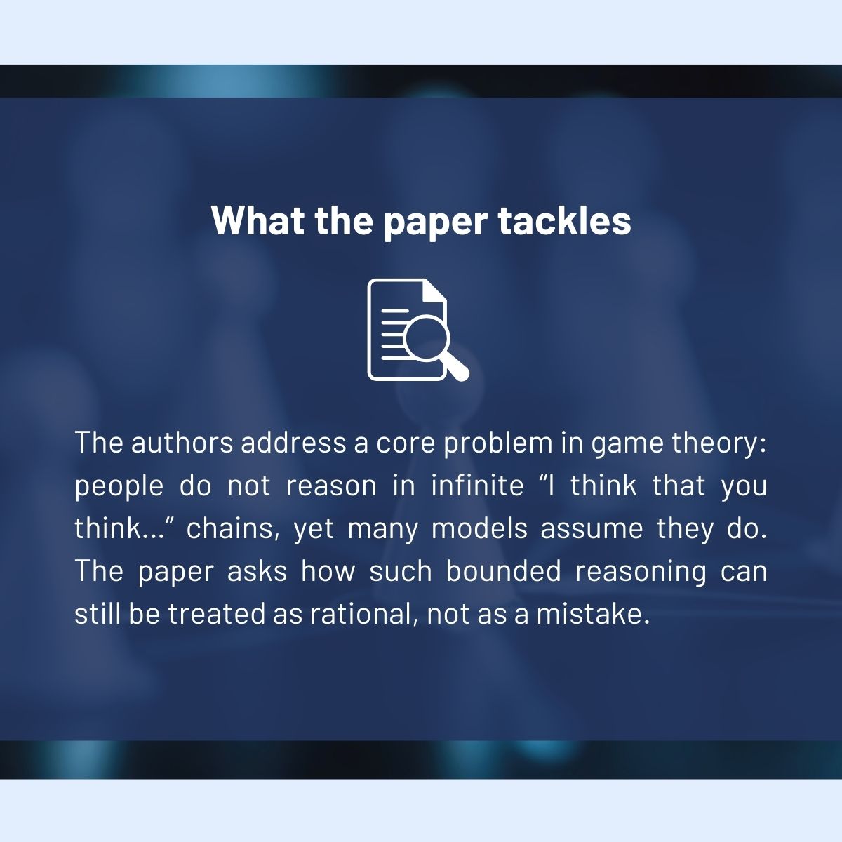 In real life, people rarely think endlessly about what others might do. In strategic situations—like negotiations, auctions, or policymaking—we make a few steps of reasoning and then stop. This may be regarded as a deviation from 'full' rationality due to, e.g., cognitive limitations, or because one believes that their co-players are limited themselves. A new study, “Reasoning about Bounded Reasoning,” by Shuige Liu and Gabriel Ziegler, shows that this limited or bounded reasoning can still be seen as rational behavior. The paper develops a simple but rigorous framework that explains how people reason about others and connects two main traditions in game theory.