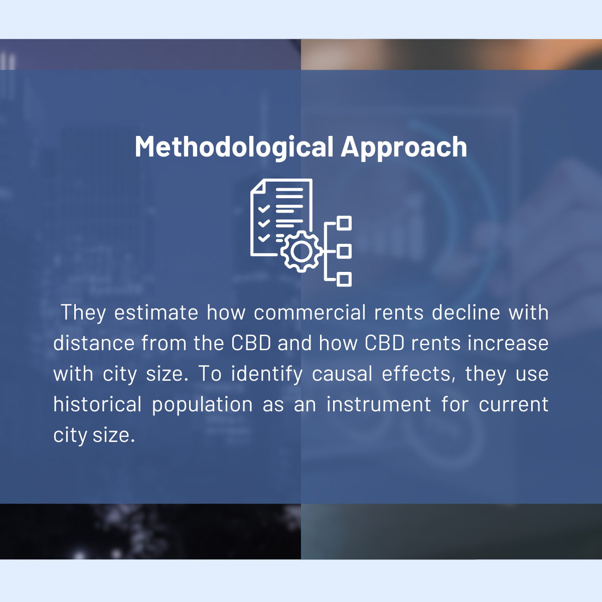 The researchers also identify central business districts (CBDs), defined as the most economically dense “prime locations” within each local labor market. A local labor market is a region where most people both live and work. By combining rent data with information on city population and geography, the authors can compare cities of different sizes in a consistent way.