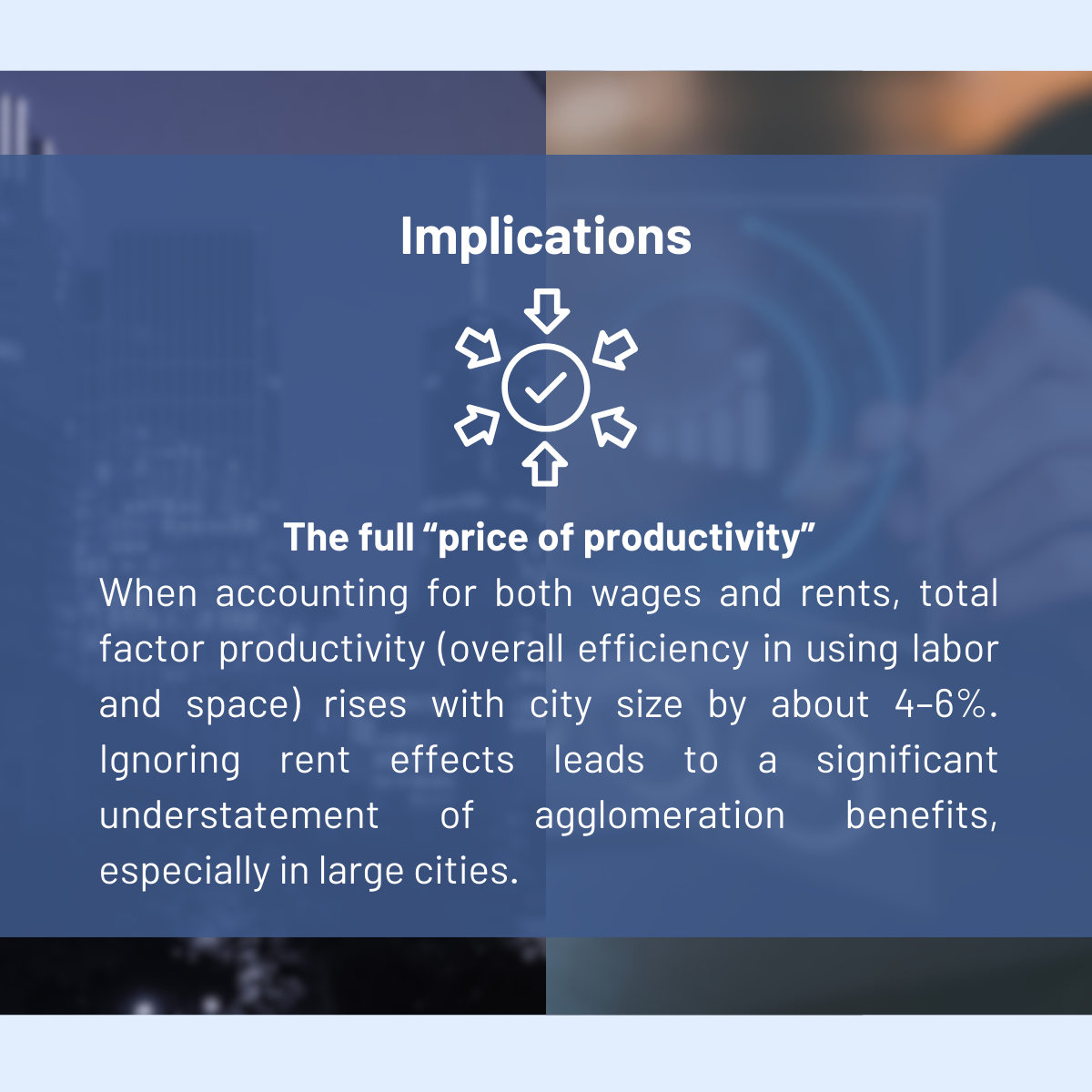 Overall, the study offers a more complete picture of the “price of productivity” in economies. It shows that the benefits of city size are real – but they are not free. Firms pay for access to dense, productive environments not only through higher wages, but also through higher rents. Understanding both channels is essential for measuring the true economic value of cities.